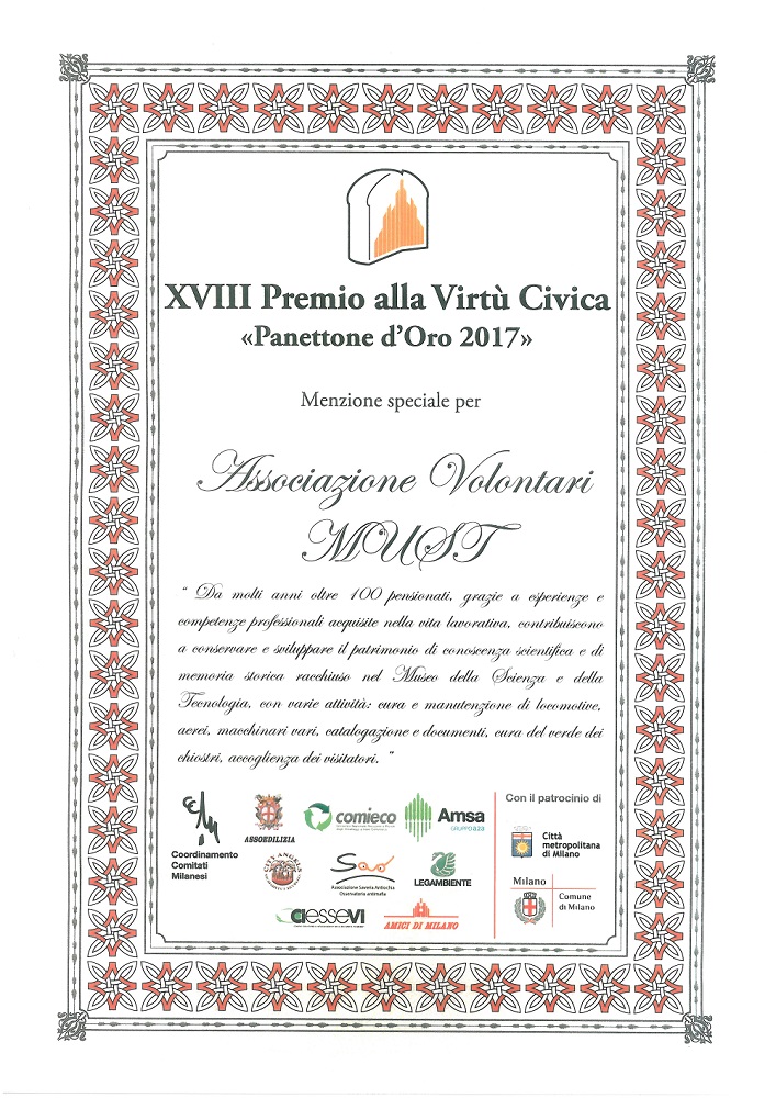 La nostra associazione riceve il premio alla Virtù Civica "Panettone d'Oro 2017" Menzione speciale.